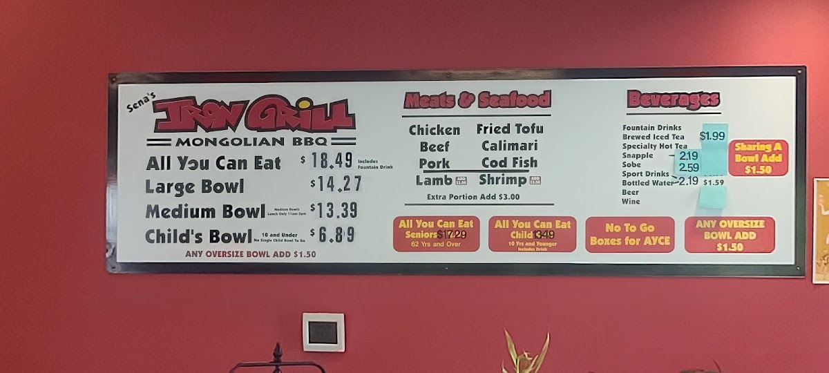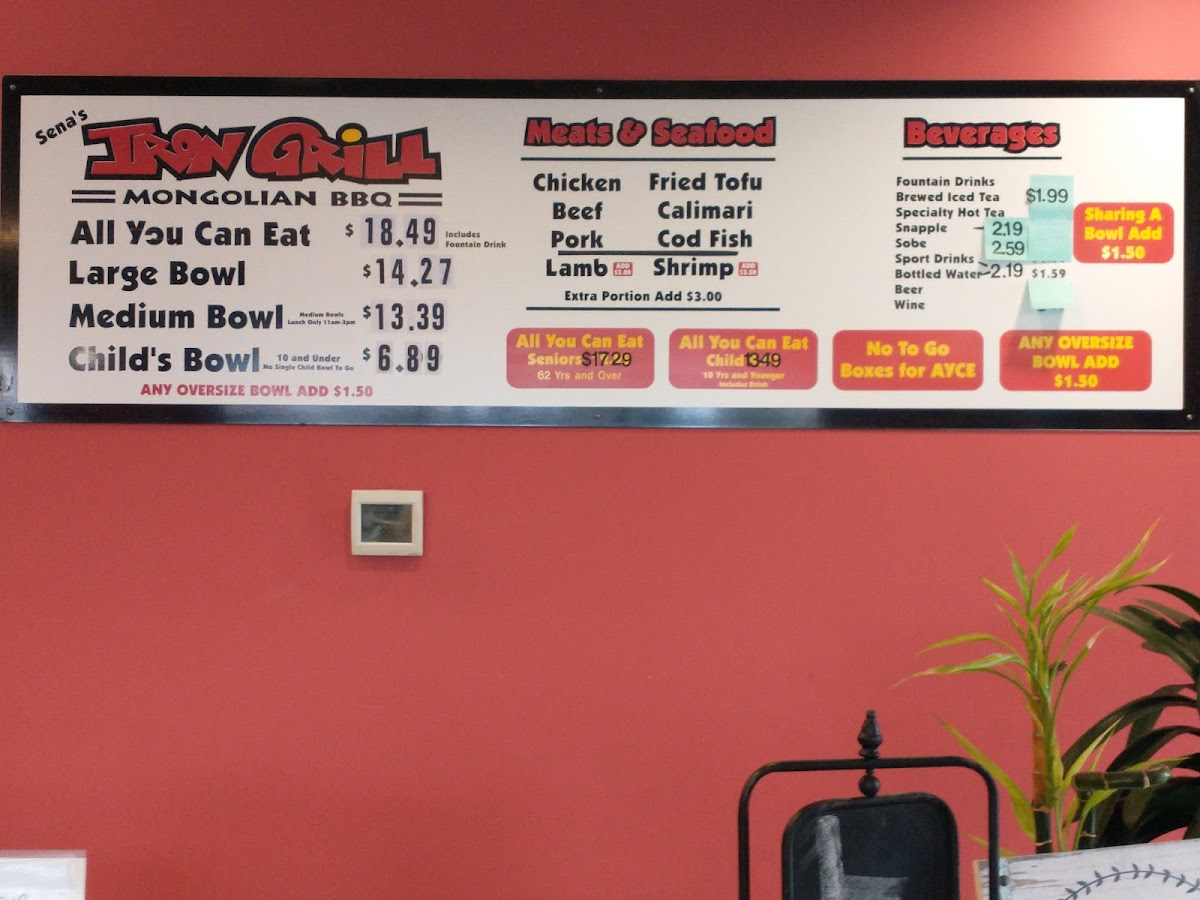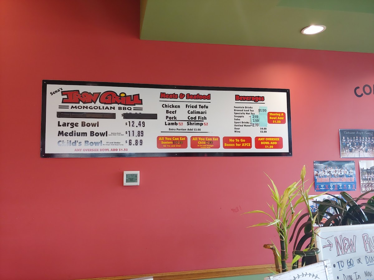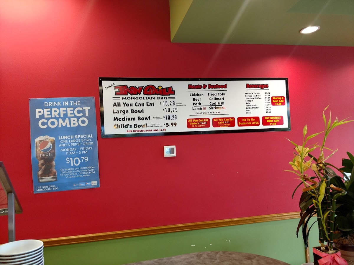 The menu at Iron Grill offers a straightforward and approachable selection centered around classic Mongolian barbecue and Asian-inspired dishes. You’ll find a variety of customizable bowls, perfect for crafting a balanced meal with fresh vegetables, your choice of protein, and flavorful noodles or rice. Popular options include Chicken Teriyaki, savory stir fry with rice, and noodle dishes like Yakisoba, which all complement the casual, relaxed atmosphere of the restaurant.